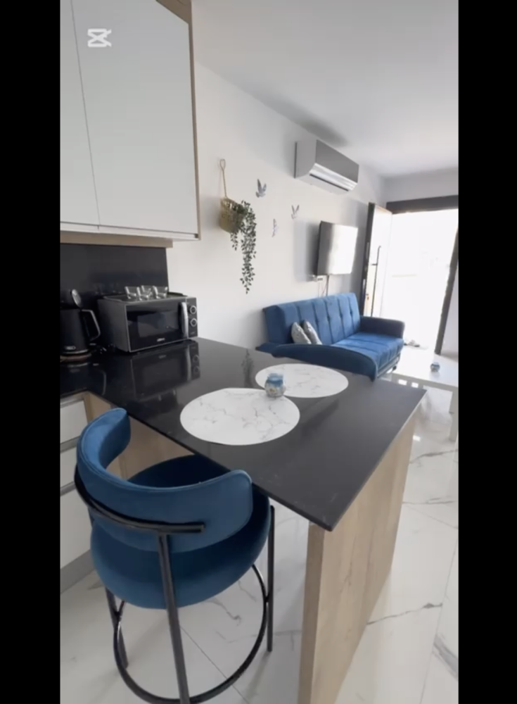 Nabízíme zahradní apartmán pro 2-3 osoby s terasou s výhledem na západ a výhledem do hor. Apartmán se nachází na severním Kypru, pouhých 400 metrů od moře v oblasti Bogaz/Iskele. Apartmán má obývací pokoj s kuchyní a koupelnu se sprchovým koutem. V místnosti je manželská postel 160x200 cm a rozkládací sedačka. Apartmán je plně vybaven: TV, postel a prostorná sedačka, 1 koupelna, lednice, pračka, trouba, varná deska, klimatizace, lůžkoviny a ručníky. Resort je nový a najdete zde dětské hřiště, bazény se skluzavkami, které jsou vzdálené cca 100m. Součástí resortu je krásná písečná pláž, vybavená slunečníky s lehátky, které jsou pro ubytované hosty zdarma. Všude je spousta zeleně a klidné prostředí.