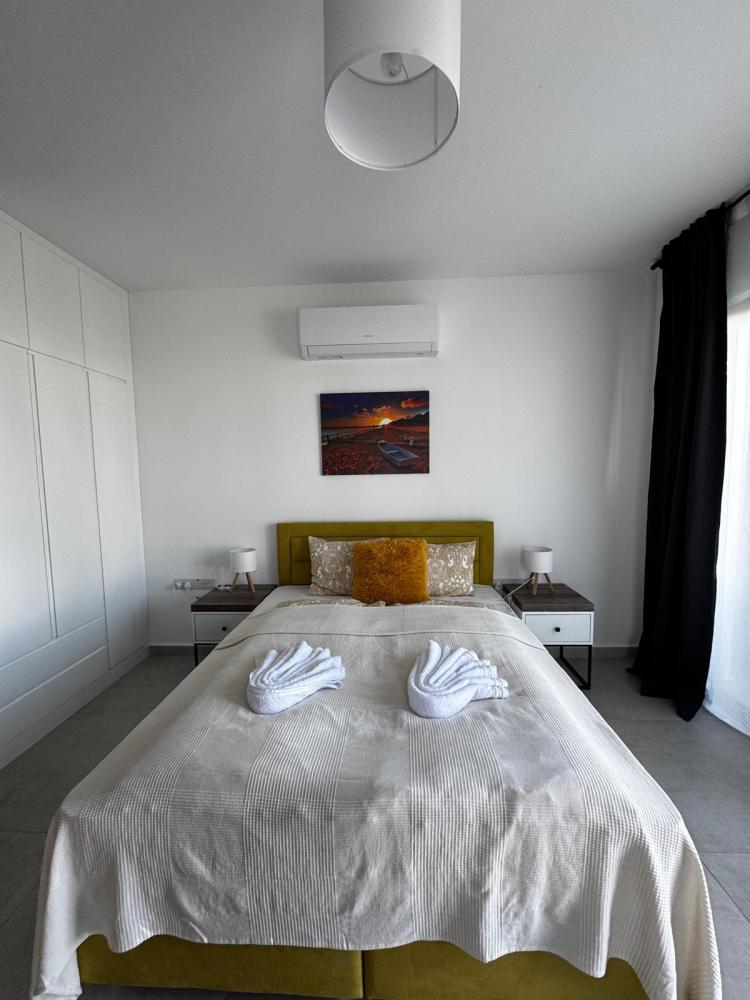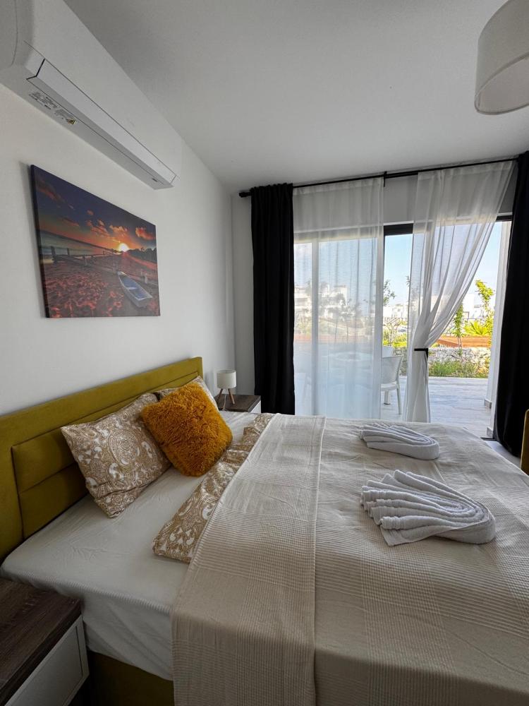 We offer studios for 2-3 people with a balcony and an stress-free terrace, or studios with a terrace and a view of the garden, the pool, the sea or the mountains. The studios are located just 300 meters from the sea in Cyprus in the Bahceli area. The studios are fully equipped: TV, sofa bed or 160x200 cm bed, fridge, washing machine, oven, hob, air conditioning, bedding and towels.