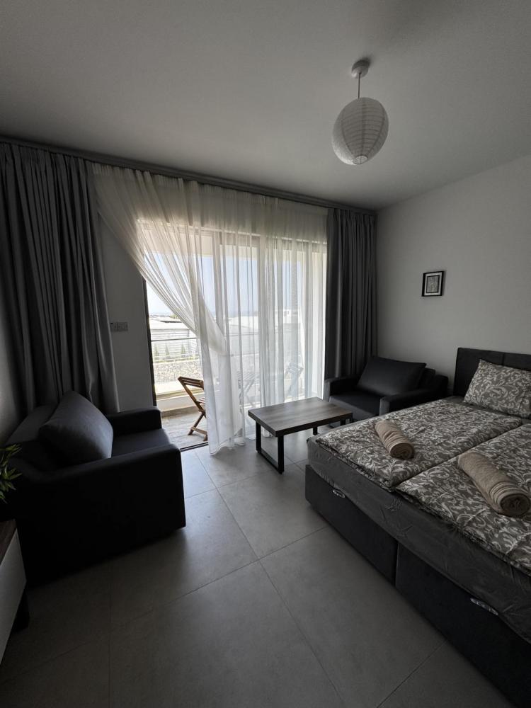 Studio apartment for 2-4 people with balcony and roof terrace overlooking the sea and mountains. The studio is located just 300 meters from the sea in Cyprus in the Bahceli area. The studio is fully equipped: