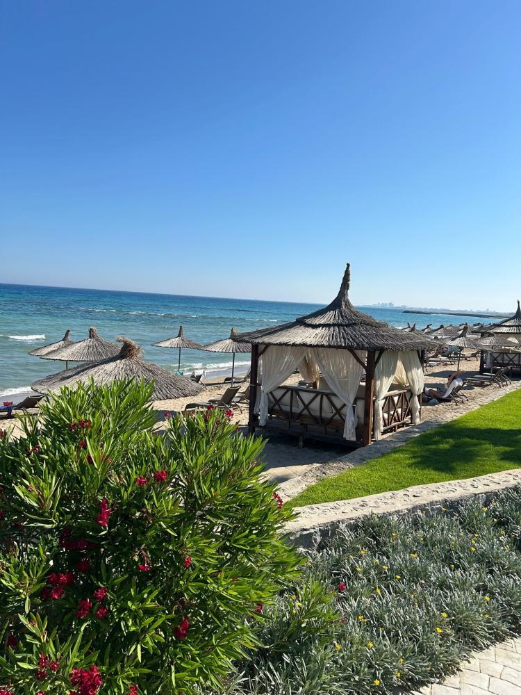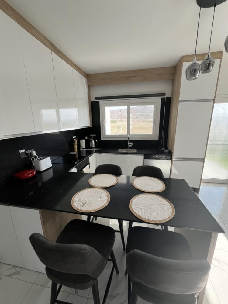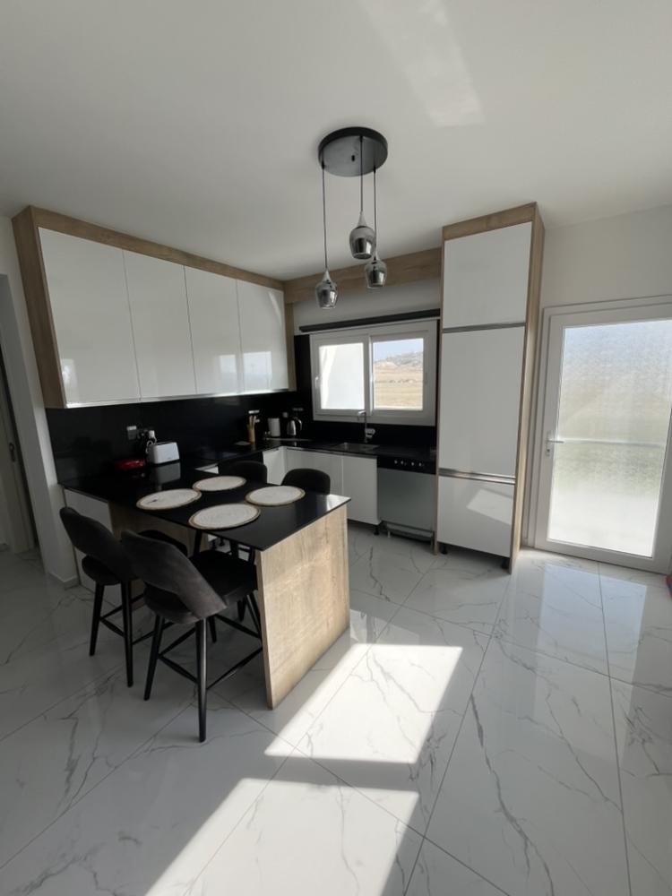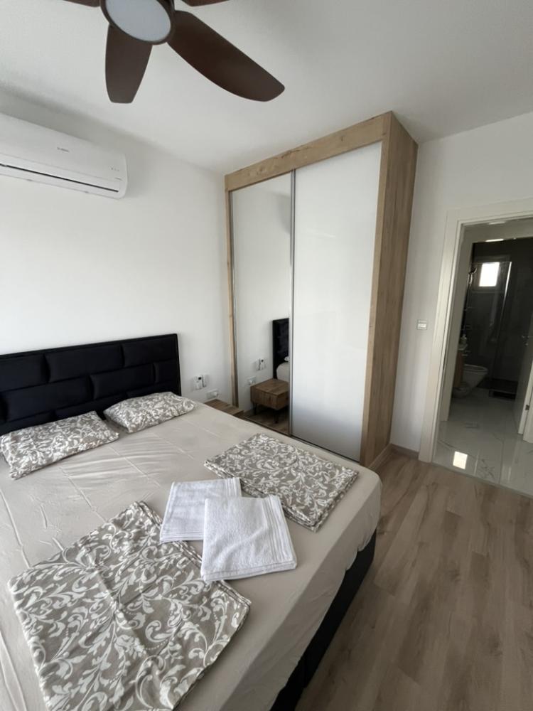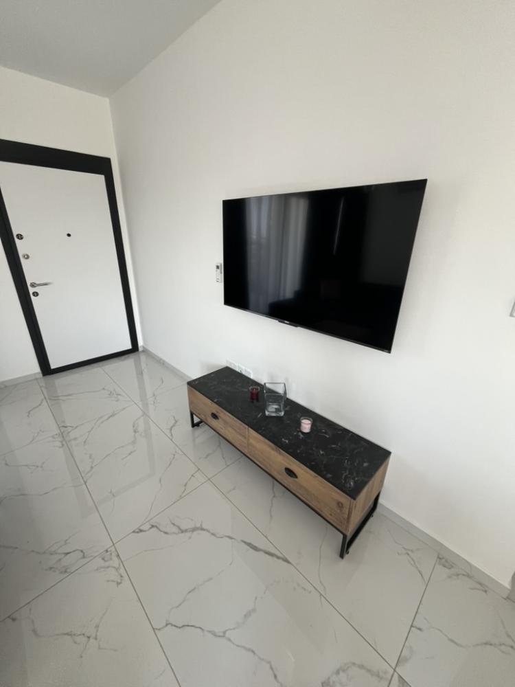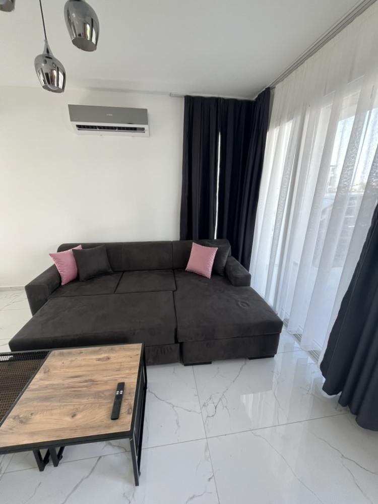 We offer a garden apartment for 2 + 2 persons with 2 terraces - one facing east and the other facing west with a view of the mountains and the resort. The apartment is located just 600 meters from the sea in Cyprus, in the Iskele area. The garden apartment has a separate bedroom, a bathroom with a shower, and a large living room with a sofa bed and a kitchen. The apartment is fully equipped: TV, bed and spacious sofa, 1 bathroom, refrigerator, washing machine, oven, cooktop, air conditioning, bed linen, and towels. The resort is new, and from the terrace, you can see the children's playground, with pools featuring slides located about 100 meters away. There is plenty of greenery and a peaceful environment all around.
