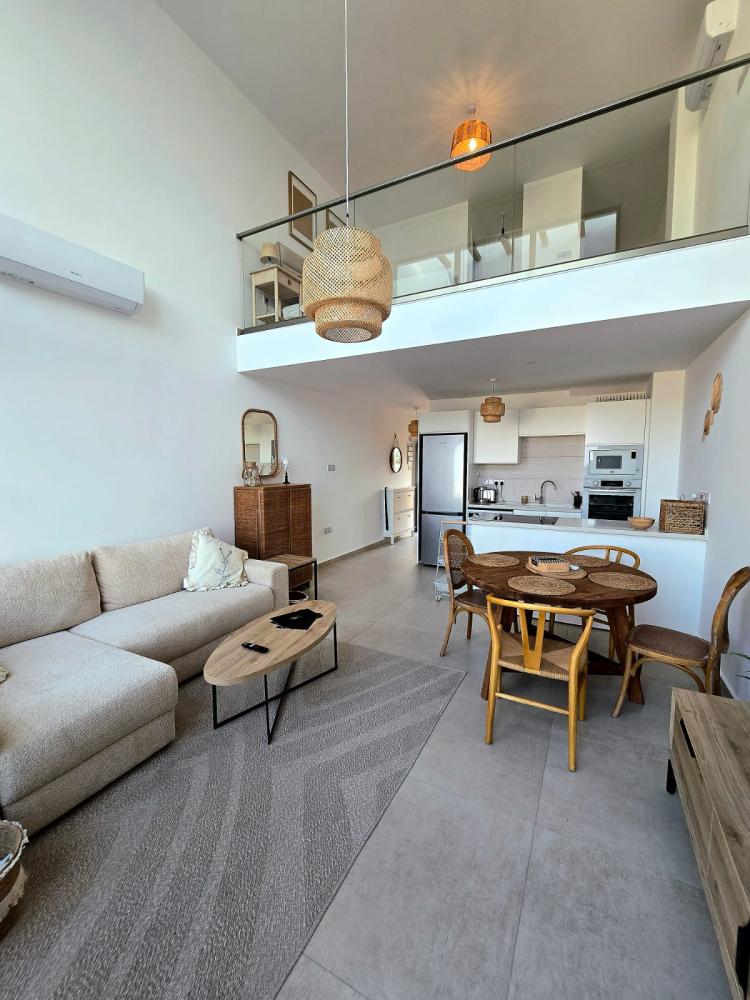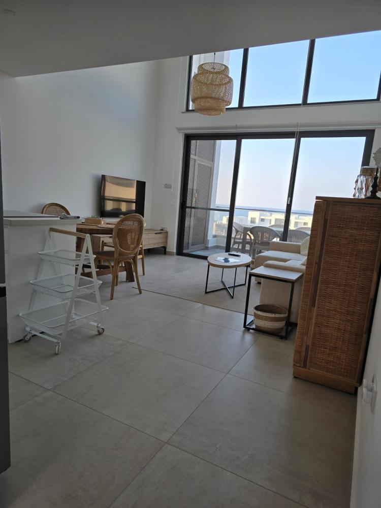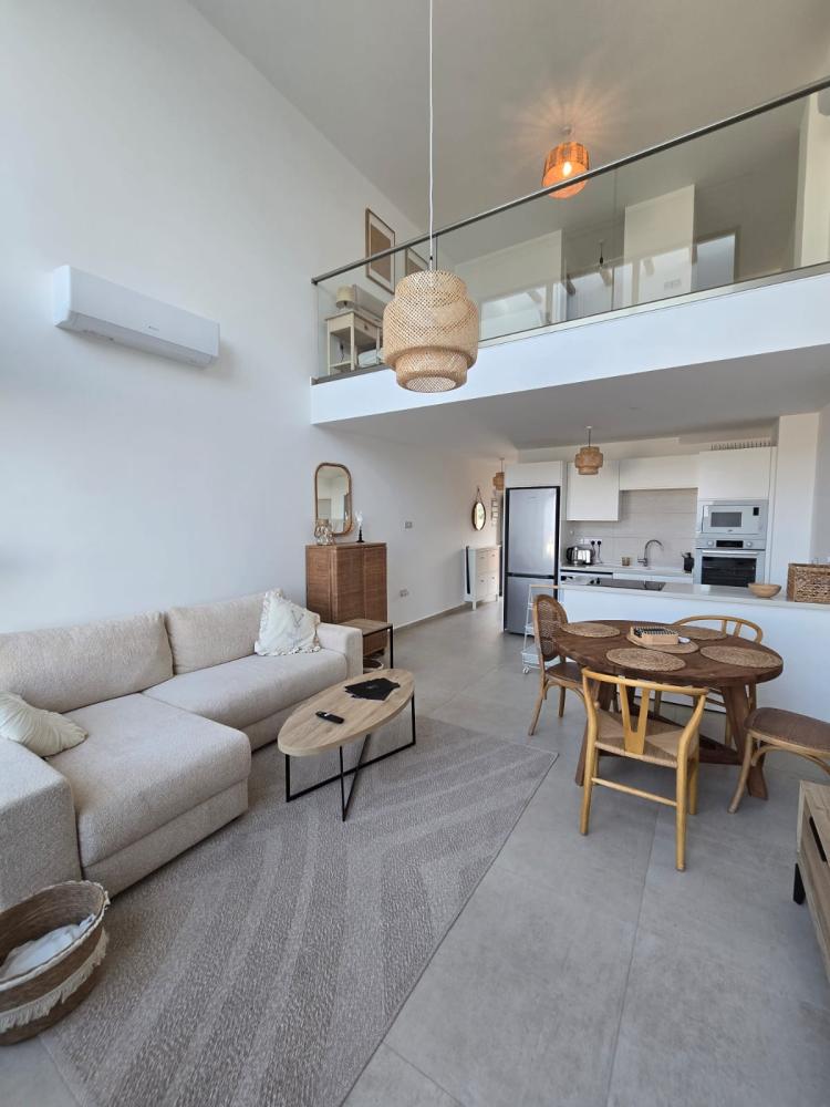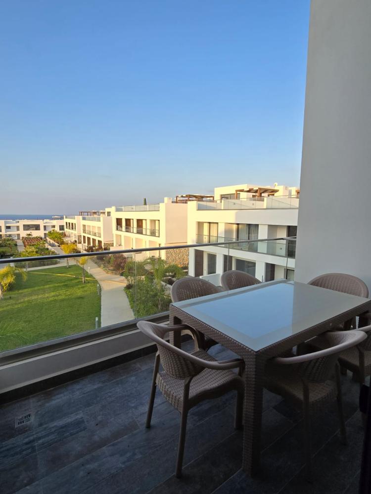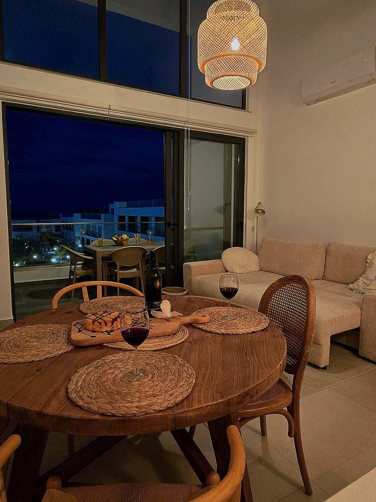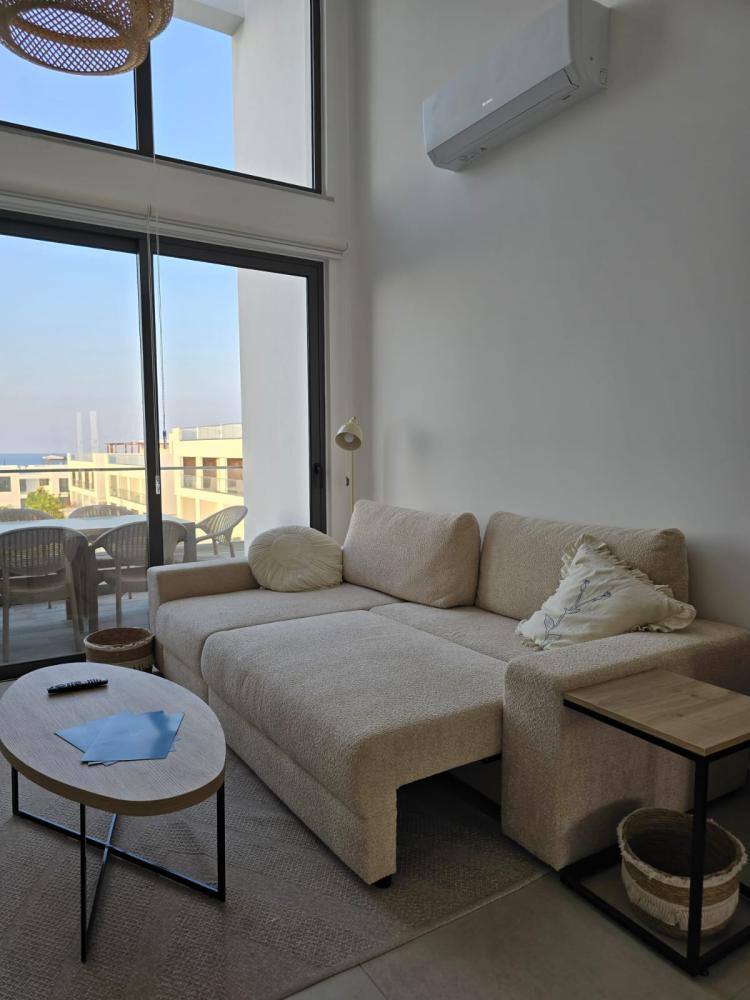 This is a fantastically equipped apartment for 2-4 guests. It has a wonderful view of the pool and the sea, not only from the balcony, but also directly from the bed. It is a loft apartment with a living room, spacious kitchen, and dining area. The apartment offers 2 bathrooms, which is really very comfortable. Guests have access to the living room, kitchen, dining room, 2 bathrooms, bedroom, and terrace. Upstairs there is a large bed for two, and in the living room there is a sofa bed for 2. Also included in the price is access to the outdoor and indoor pool, sauna, and gym. You can also use the paid services of a hammam and massages. There is also a restaurant with a pool and a natural beach in the complex.