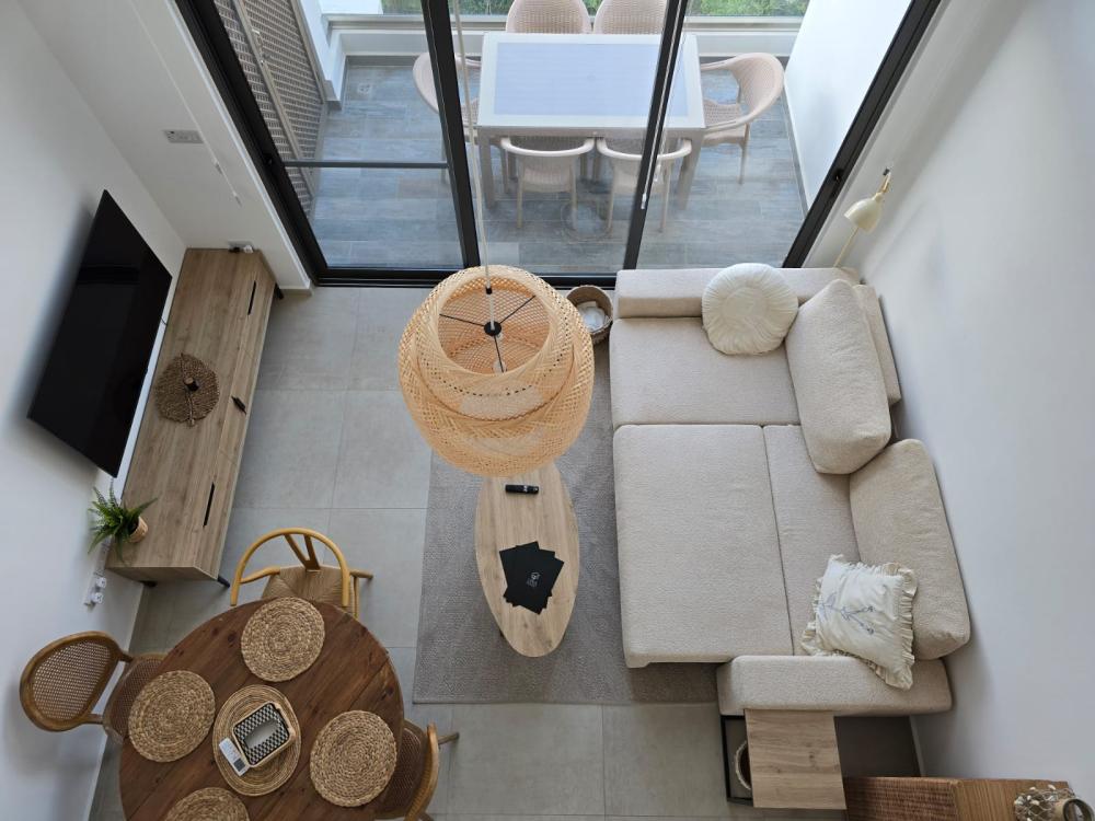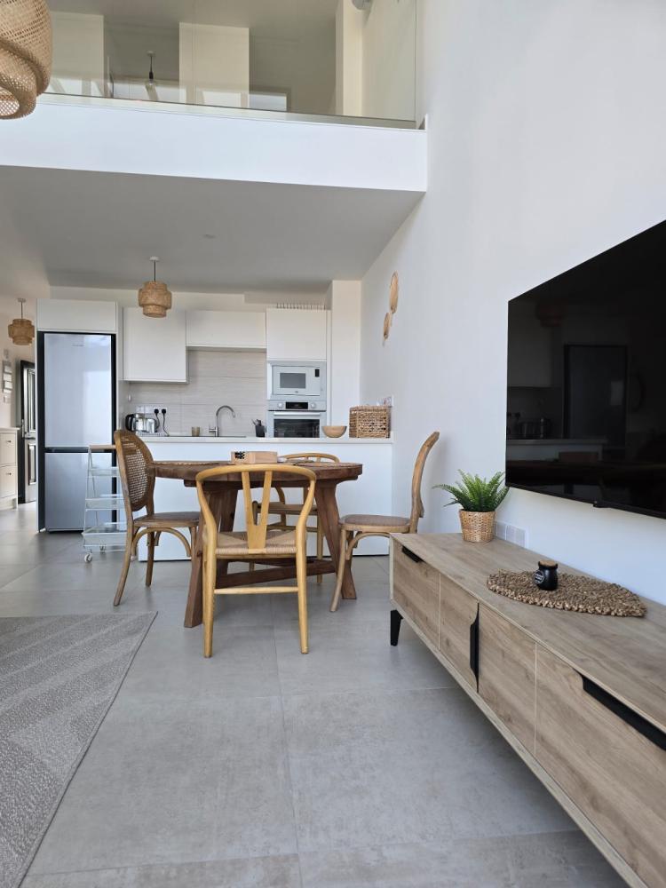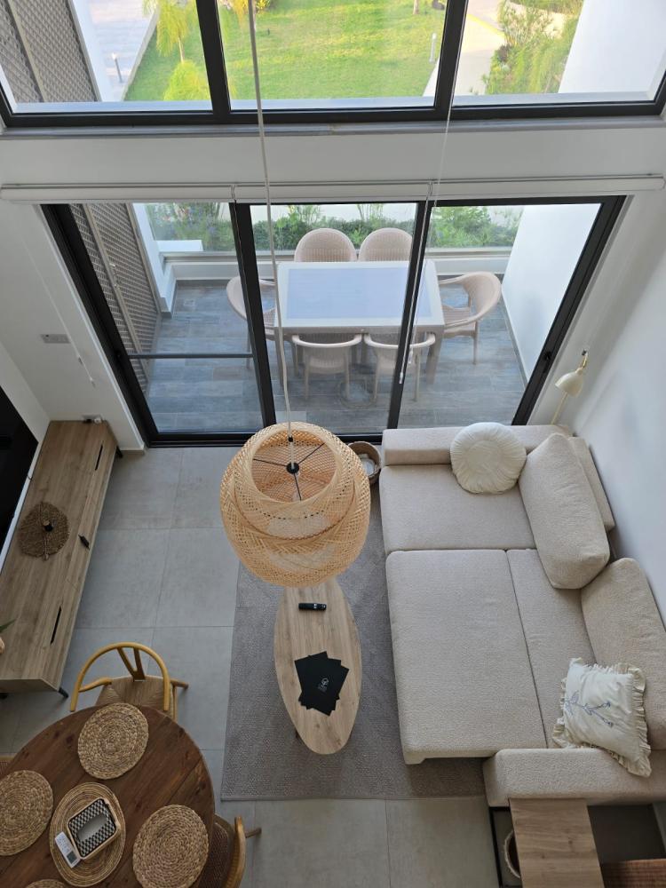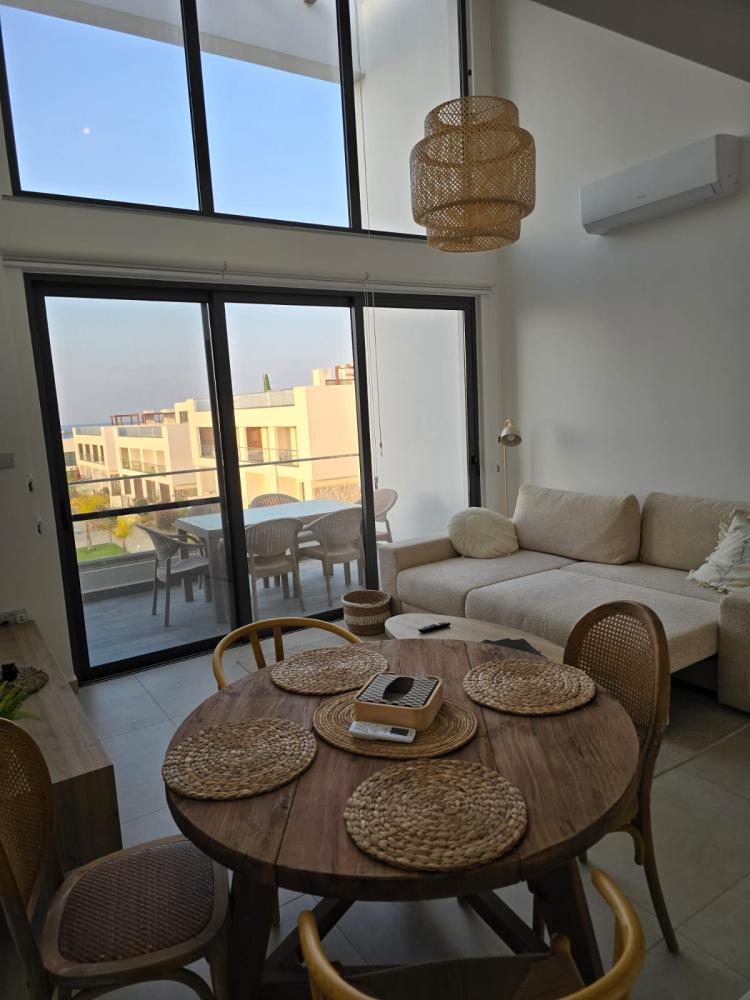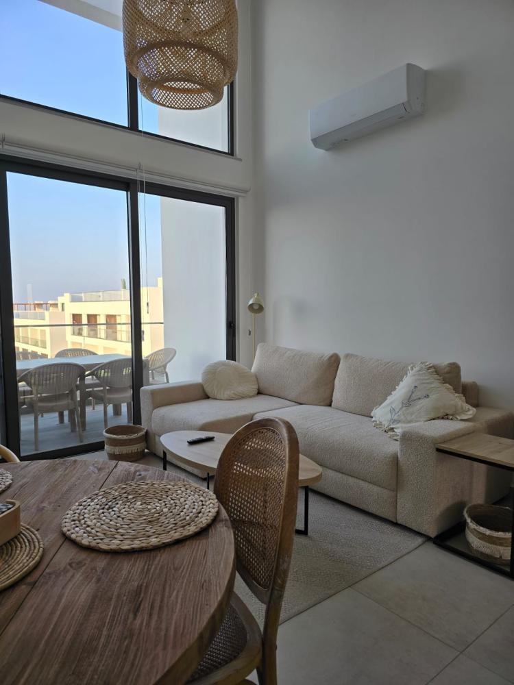 This is a fantastically equipped apartment for 2-4 guests. It has a wonderful view of the pool and the sea, not only from the balcony, but also directly from the bed. It is a loft apartment with a living room, spacious kitchen, and dining area. The apartment offers 2 bathrooms, which is really very comfortable. Guests have access to the living room, kitchen, dining room, 2 bathrooms, bedroom, and terrace. Upstairs there is a large bed for two, and in the living room there is a sofa bed for 2. Also included in the price is access to the outdoor and indoor pool, sauna, and gym. You can also use the paid services of a hammam and massages. There is also a restaurant with a pool and a natural beach in the complex.