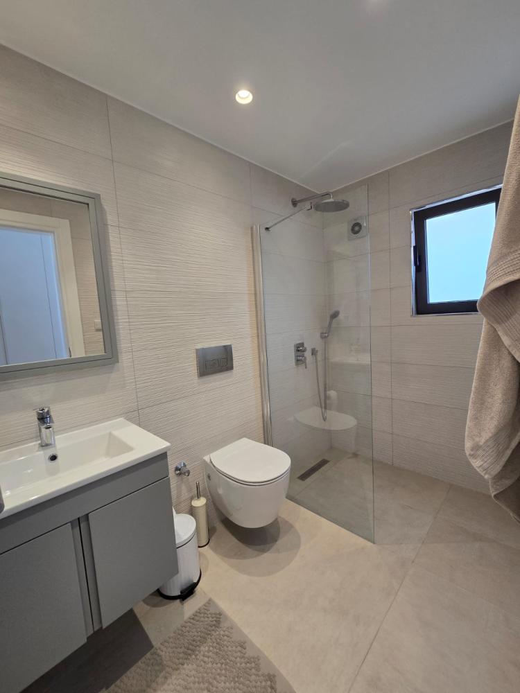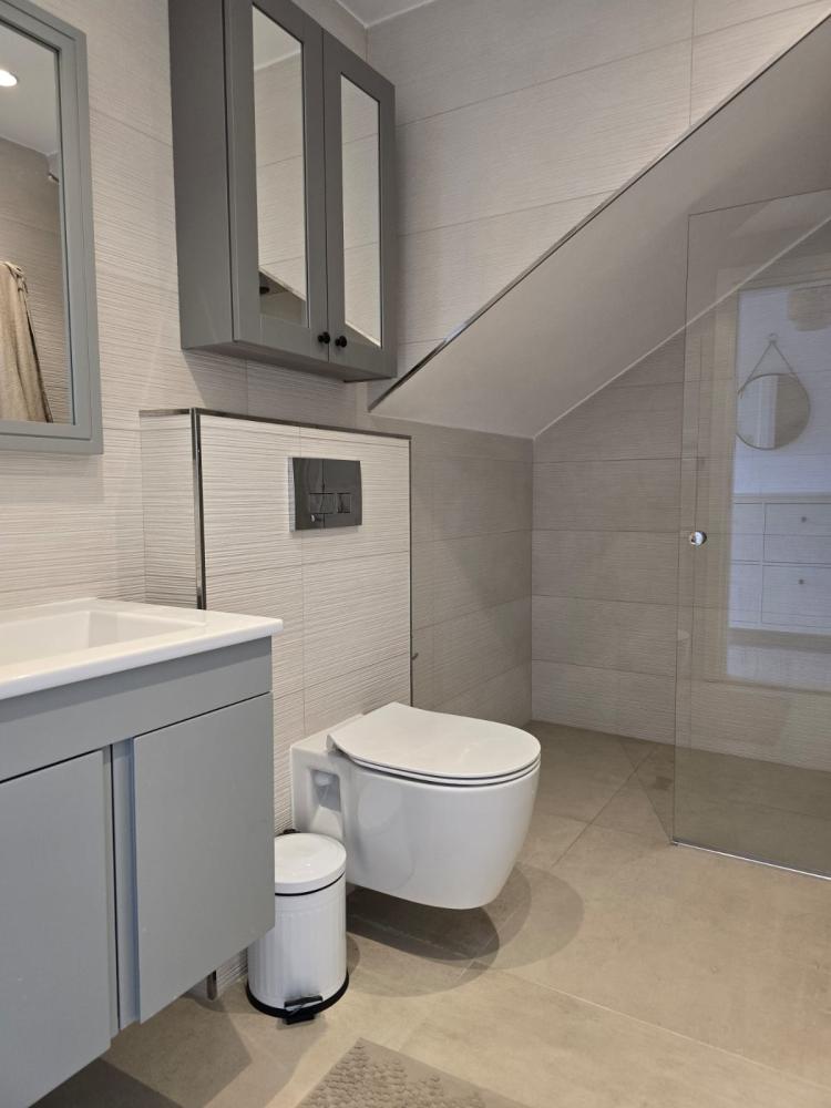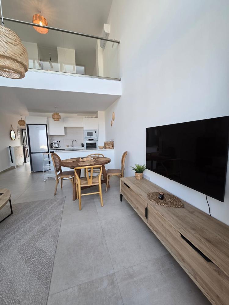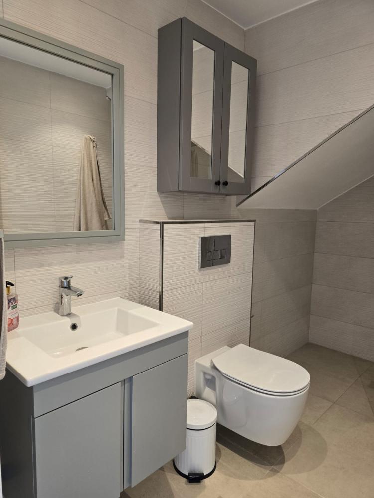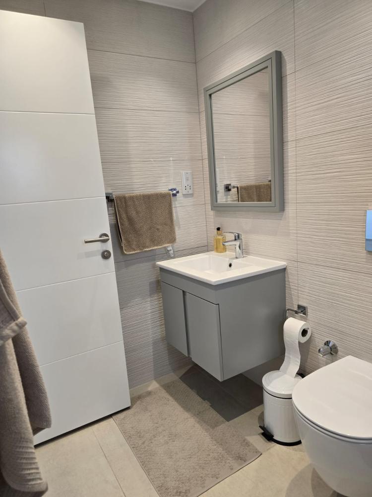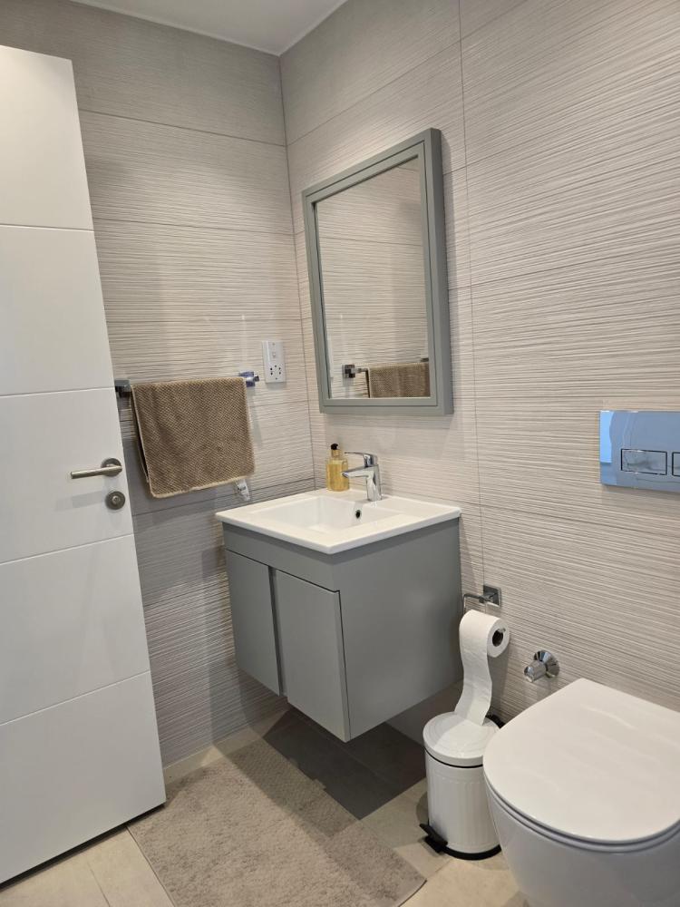 This is a fantastically equipped apartment for 2-4 guests. It has a wonderful view of the pool and the sea, not only from the balcony, but also directly from the bed. It is a loft apartment with a living room, spacious kitchen, and dining area. The apartment offers 2 bathrooms, which is really very comfortable. Guests have access to the living room, kitchen, dining room, 2 bathrooms, bedroom, and terrace. Upstairs there is a large bed for two, and in the living room there is a sofa bed for 2. Also included in the price is access to the outdoor and indoor pool, sauna, and gym. You can also use the paid services of a hammam and massages. There is also a restaurant with a pool and a natural beach in the complex.